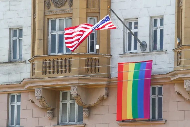 The rainbow flag flies at the U.S. Embassy in Moscow, Russia to this day.